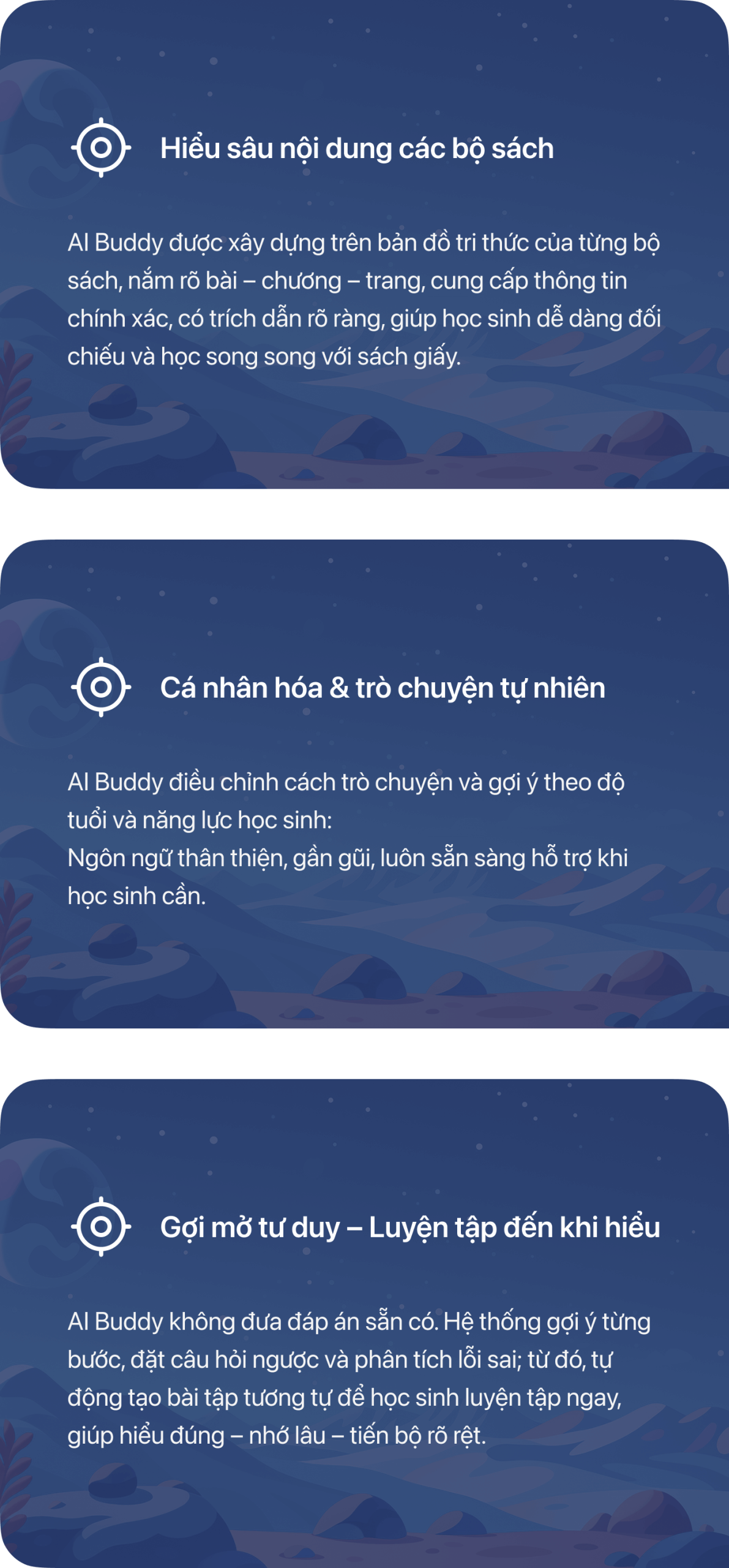 Học liệu số do AIDIA triển khai là hệ thống học liệu được số hóa và thiết kế trực quan, giúp học sinh tiếp cận kiến thức một cách sinh động, dễ hiểu và phù hợp với nhiều cách học khác nhau.